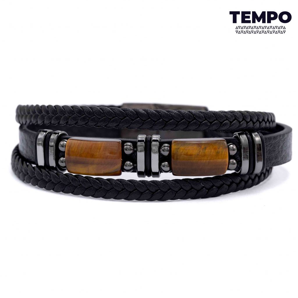 Pulsera para caballero - Cuero y piedra natural - CP5