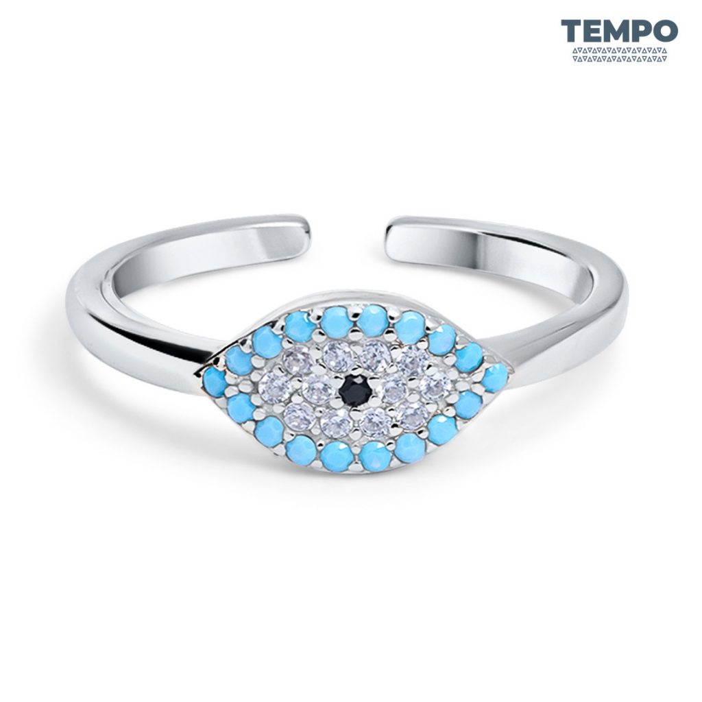 ANILLO HECHO DE PLATA 925 - AJUSTABLE -OJO TURCO BRILLANTES- A121