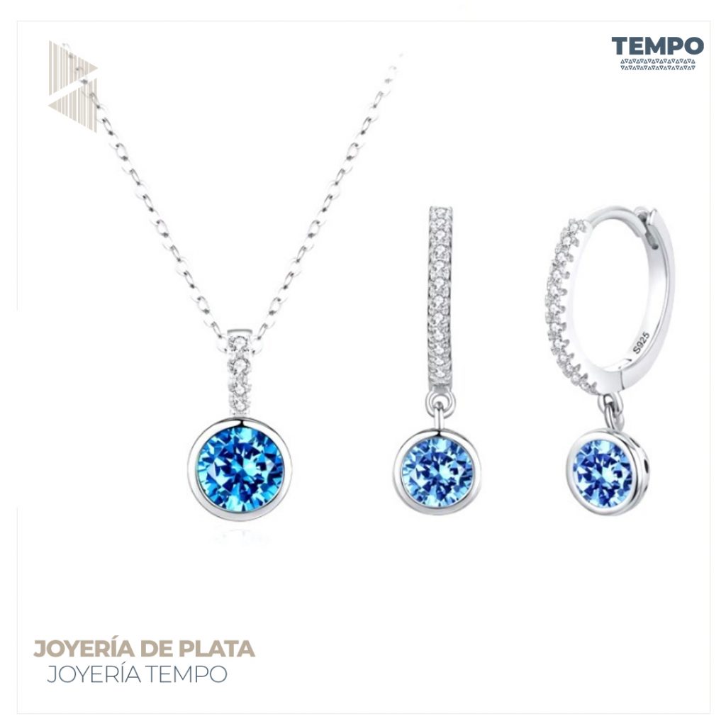 Conjunto de Plata 925 - Aritos y Collar - AGUAMARINA- COP48 $55.00