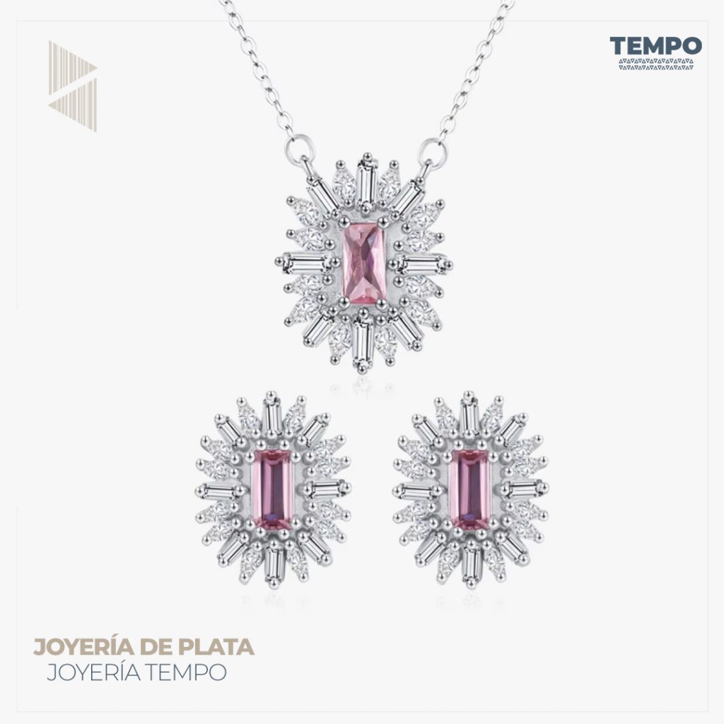 Conjunto de Plata 925 - Aritos y Collar - OPALO ROSA- COP50 $55.00