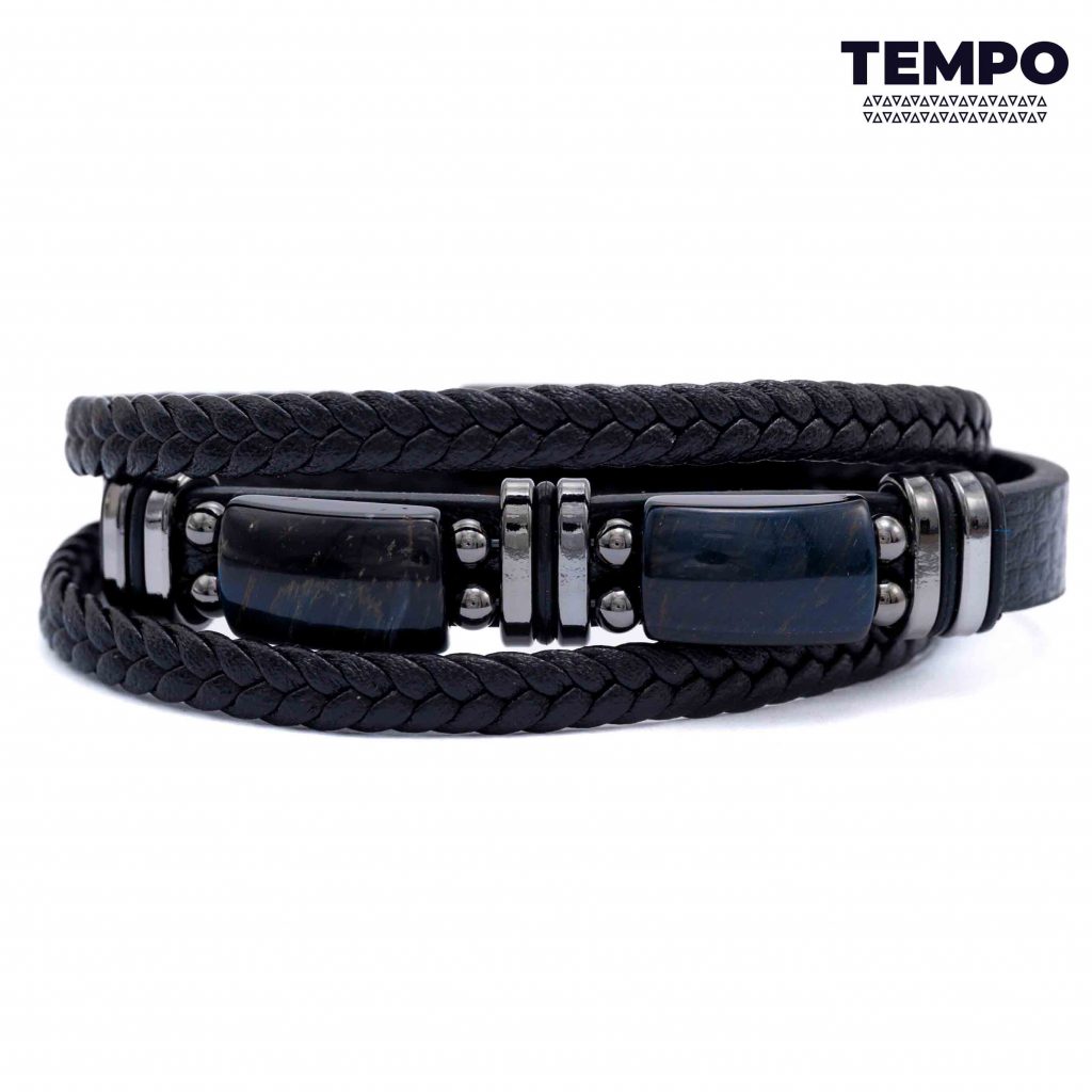 Pulsera para caballero - Cuero y piedra natural - CP6