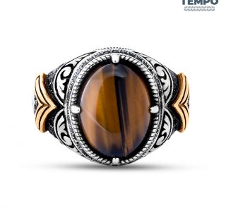 Anillo para caballero – Hecho de acero con piedra natural – APN9