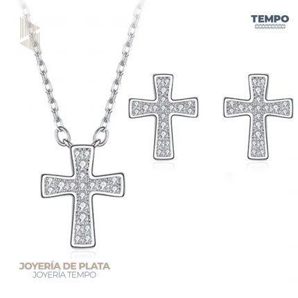 Conjunto de Plata 925 – Aritos y Collar – CRUZ– COP85