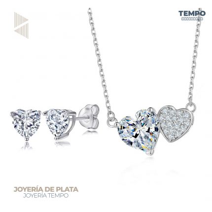 Conjunto de Plata 925 – Aritos y Collar – CORAZÓN DOBLE– COP80