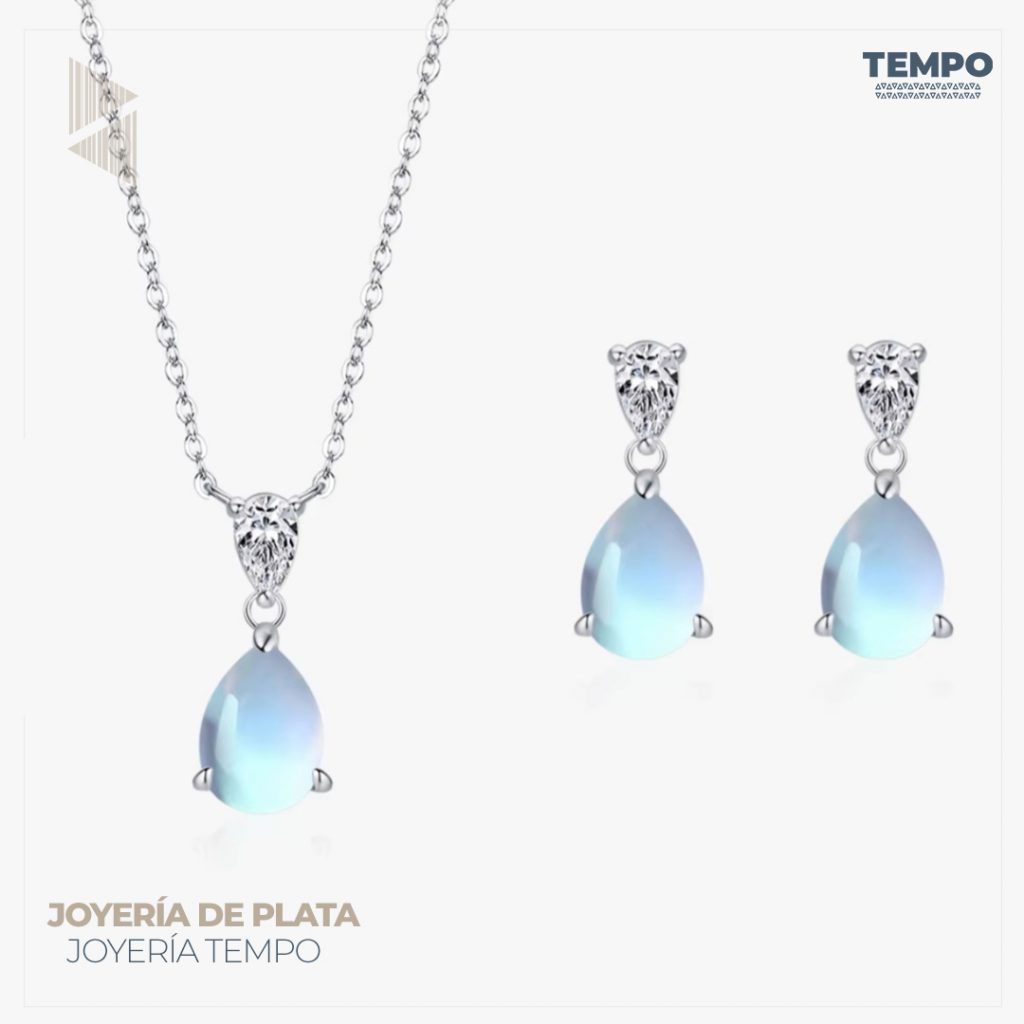 Conjunto de Plata 925 – Aritos y Collar – PIEDRA LUNAR COP51