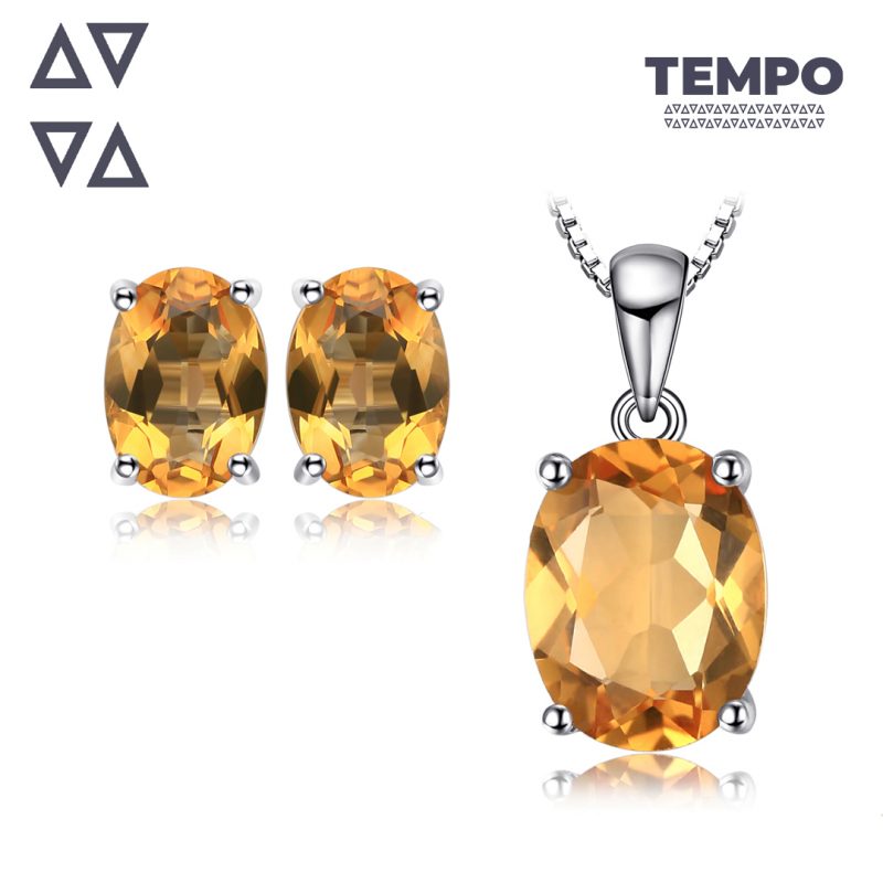 Conjunto de Plata 925 – Aritos y Collar – Ámbar ovalado COP56