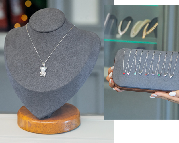 Nuestros conjuntos de plata combinan collares y aretes en armonía perfecta.
