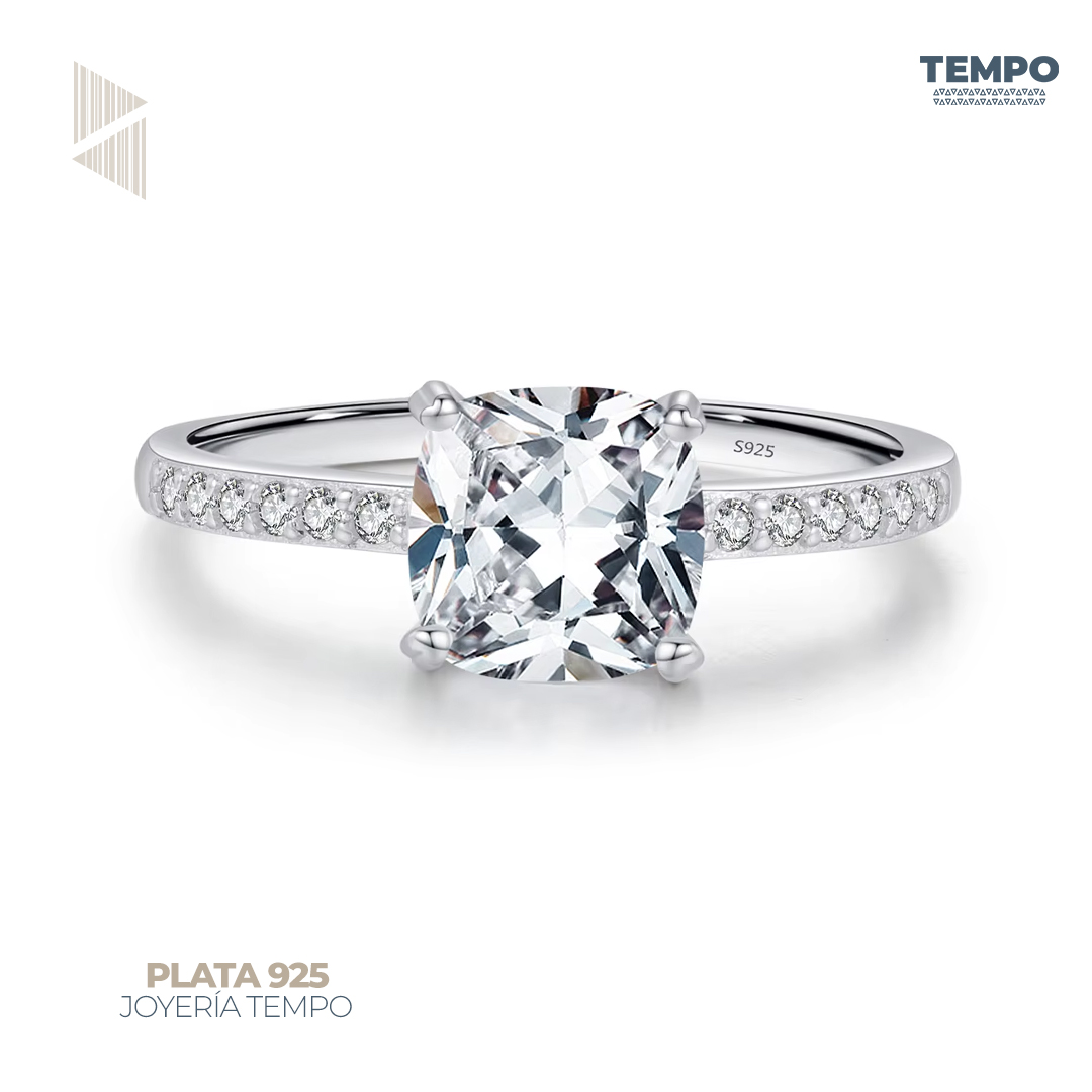 Anillos de compromiso – Plata 925 – AC77- CORTE CUSHION LISO